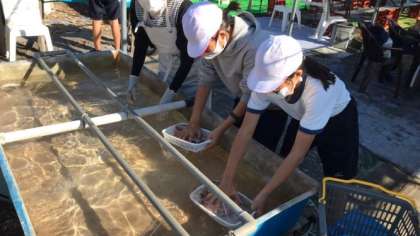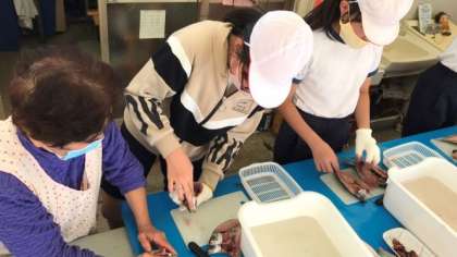 干物作りを体験しました。魚をさばいたり,干したりしました。