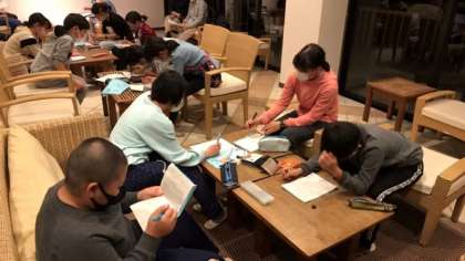 夕食の後は,今日のふり返りをしました。学級ごとやグループごとにふり返りをしました。