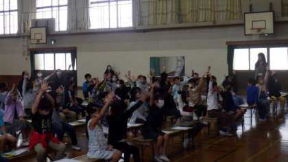 川島織物様をゲストティーチャーにお招きし,環境についての学習をしました。はじめに,織物や環境についてのお話を聞きました。