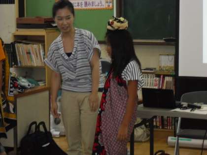 又、お祝いのときなどに着る衣装を実際に着せてもらいました。