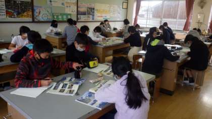 流れる水のはたらきなどを考えながら,岩石の観察をしています。