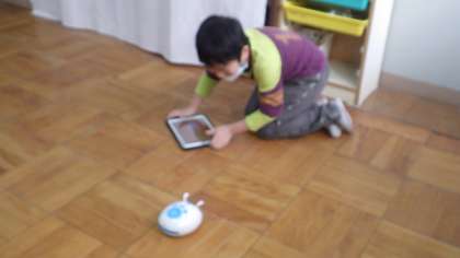 今日もプログラミングロボットを使って活動しました。今日は,タブレットを使って操作しました。専用のアプリケーションでコースを描き,ロボットを走らせることに挑戦しました。