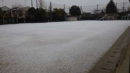 夜中からの雪で,学校もうっすらと雪が積もっています。登校した子どもたちも,運動場一面の雪を見てびっくりしていました。