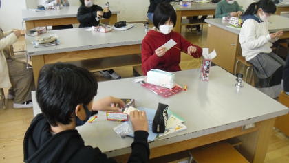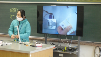 電磁石の学習にあたり,それぞれが自分の電磁石を作っています。コイルの巻き加減など苦戦しながらも,熱心に作業を進めています。