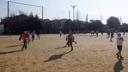 たくさんの子どもたちが中間休みに外に出て,元気に遊んでいます。