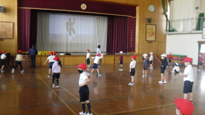 3学期は体育館しか使えませんが,距離を保ちながら,元気よくエイサーのリズムに合わせて体を動かしました。