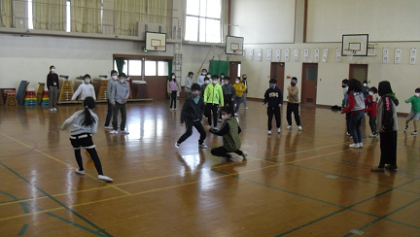 運動場の改修工事が始まり,休み時間は体育館を学年ごとに順番に利用しています。今日の昼休みは,5年生の番です。ドッジボールで体を動かしました。クラスマッチだけでなく,いろいろな組み合わせで対戦を楽しんでいました。