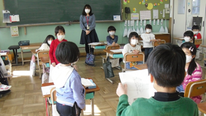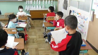 おかみさんやたぬきの行動について想像を広げて読み,感じたことを友だちと伝え合いました。