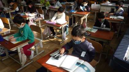 「(  )の中には,(  )がいる。」「(  )の中には,(  )がある。」(例:ぼうしの中には,うしがいる。)のような言葉クイズを作って,友達と交流しています。