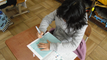 水書筆を使って文字を書きました。先が柔らかい筆の力加減が難しいようでしたが,慣れてくると上手に筆を運んでいました。