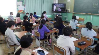 朝会の後に,リモートで児童集会を行いました。代表委員が司会進行し,各委員会からの呼びかけや連絡などについての話を聞きました。