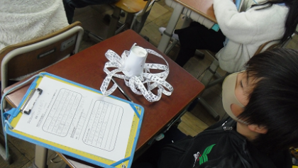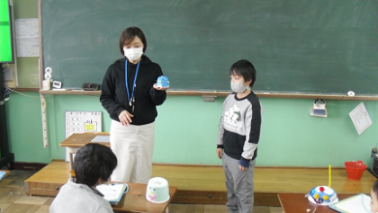 お互いの作品を動かしたり,見合ったりしながら,表現の違いや面白さを感じ取り,交流しました。