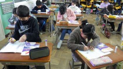 見取図のかき方を知り,直方体や立方体の見取図をかいています。
