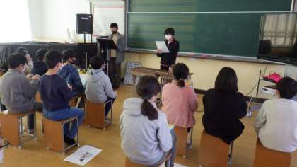 今日は,5・6年生がこれまで総合的な学習の時間で学んだことを発表しました。はじめに,5・6年生の代表が,各学年でどんな活動をしてきたかについて紹介しました。