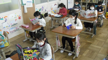 自分で選んだ本を,とても良い姿勢で読んでいます。