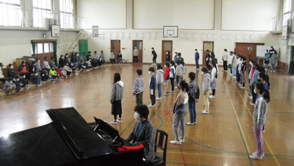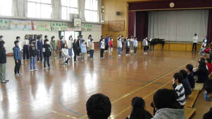 5年生は,鳳徳小学校のリーダーを受け継ぐ決意とともに歌を歌いました。