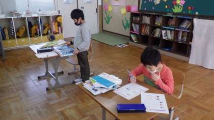 自己紹介カードを書いたりしたり,読書をしたりしています。