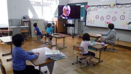 「NHK for School」の映像教材を使って,手洗いの仕方について学習しています。