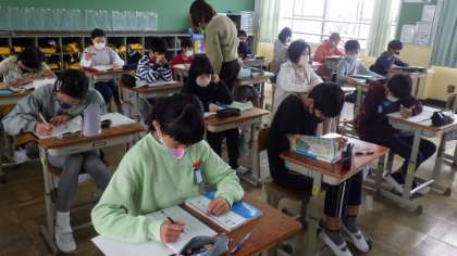 詩の情景を思い浮かべながら,どのように音読を工夫するか考えています。