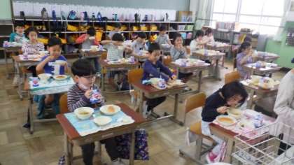 1年生の時よりも,手際よく用意ができるようになっています。たくさんの子どもたちがおかわりをしていました。