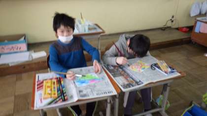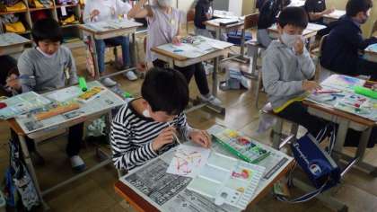 絵の具やパス,コンテを使って,いろいろな気持ちを表しています。