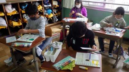 14日(水)4年図画工作「絵の具でゆめもよう」