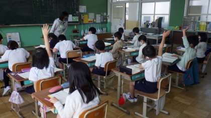 物語文「きつつきの商売」の学習をしています。ノートに表をかいて,まとめています。