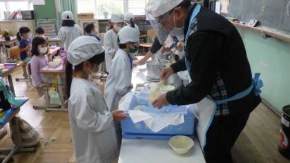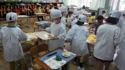 1年生の給食も3回目となりました。給食当番の仕方も上手になってきました。