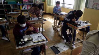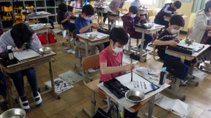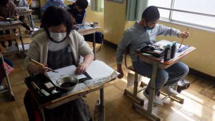 墨の濃淡の感じや筆などの扱い方を考えながら,いろいろな表し方を試しています。