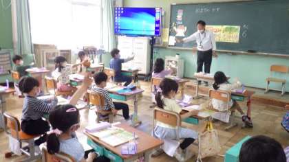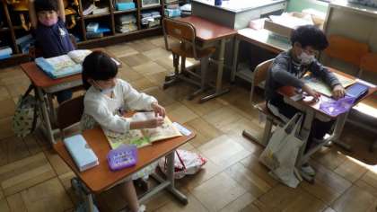 数図ブロックを使って数を数え,数字で表す学習をしています。