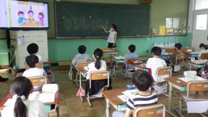 どのように同じ数ずつ分けるかについて,意見を交流しています。
