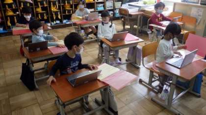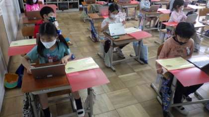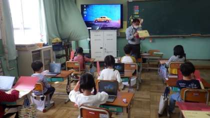 1人1タブレットでの学習を進めています。1年生もタブレットの操作に慣れることから始めます。今日は,電源の入切やログインの仕方を練習しました。
