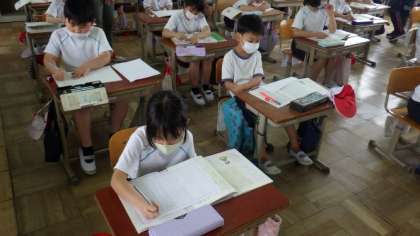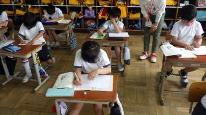 日記を書く内容や順序を確かめながら,ワークシートに書いています。