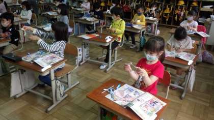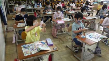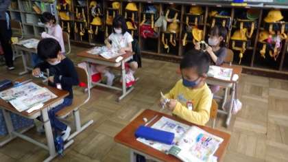 12日(水)1年図画工作「ちょきちょきかざり」