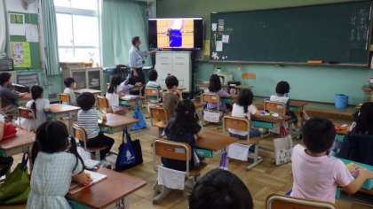 体育の学習の後に,動画教材を使ってとび箱や鉄棒の技の確認をしています。