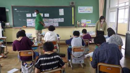 今日はALTの先生も一緒に学習しています。世界の祭りや行事について知る学習をしています。