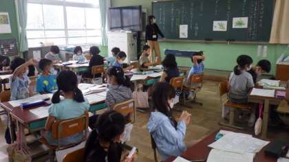 説明文「たんぽぽのちえ」の学習をしています。たんぽぽは,いつ,どんなちえを働かせているののか,時を表す言葉やかわっていく順序に気を付けて読んでいます。
