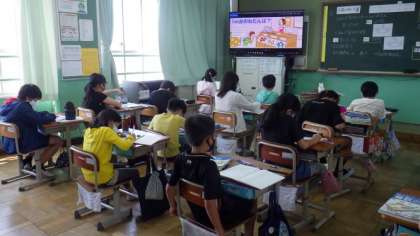 小数で割る計算について学習しています。(整数)÷(小数)を式に表し,意味を考え,説明をノートにかいています。