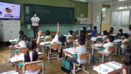 「つばめ」というお話を読んで,生き物に優しくすることの大切さについて考えています。たくさんの子どもたちが発表していました。