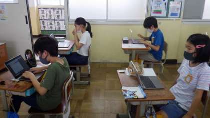1人1台のGIGA端末を使って,タイピングの練習をしています。