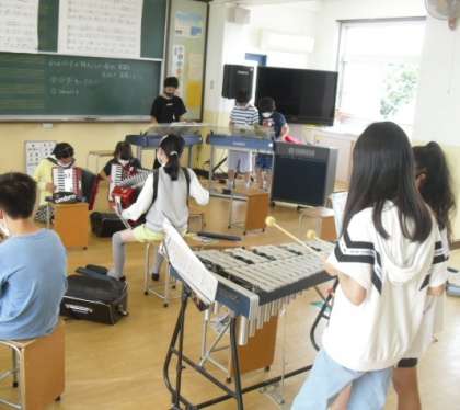 小さなグループで「ラバーズ コンチェルト」を演奏しました。学習の最後には,音楽室中に広がり,全員で演奏してみました。