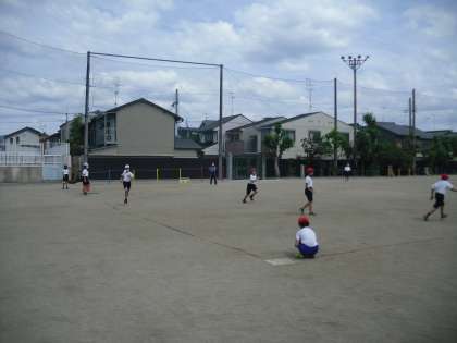 ピッチャーが投げたボールではなく,ベース上のティーに置かれたボールを打って,ゲームを楽しみます。上手に打った子に対して歓声が上がっていました。