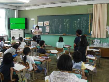 「一つの花に込めたお父さんの思い」を考えました。主人公の女の子が出征するお父さんから一輪のコスモスをもらう場面を読みながら,登場人物の思いや気持ちについて考えました。