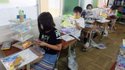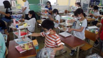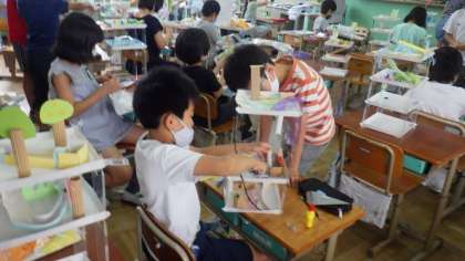 ビー玉の動きを試しながら,転がる仕組みを考えてコースを作っています。だんだん完成に近づいてきました。