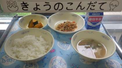 「かぼちゃの煮つけ」は,スチームコンベクションオーブンを使って作りました。かぼちゃのほくほくとした食感やあま味を味わいながら食べてほしいと思います。