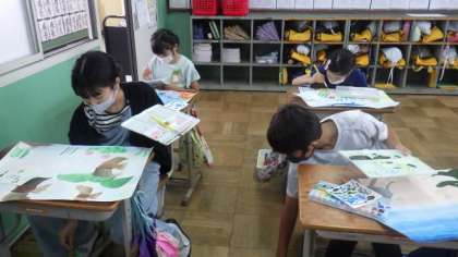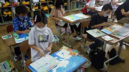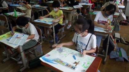 絵の具だけでなく,パスやコンテなどを使って,いろいろな表現方法で描いています。