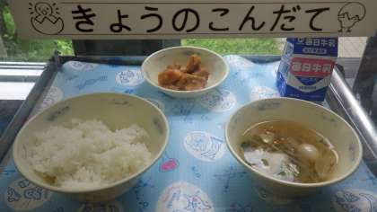 給食では,あげたとり肉にたれをからめて仕上げました。たれに酢を使っているので,さっぱりとして食べやすいです。
