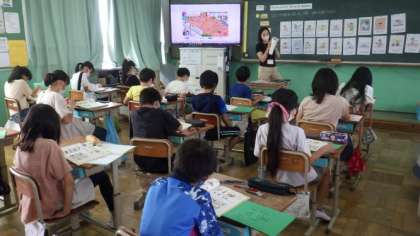 29日(水)5年外国語“He can run fast. She can do kendama.”