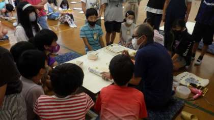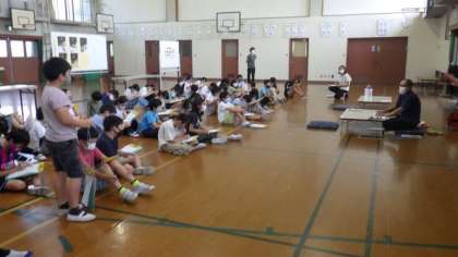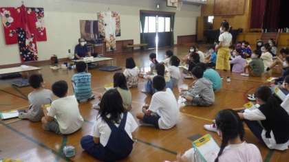 地域で代々金彩工芸をしておられる上山さんを講師にお招きし,伝統工芸についてや「働く」ということについての話を伺いました。実際の着物や道具なども見せていただき,ありがとうございました。子どもたちもたくさん質問をしていました。