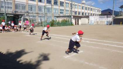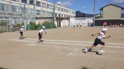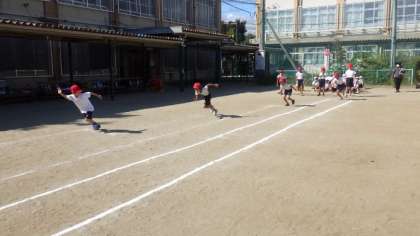 準備体操の後は,100m走の練習をしました。